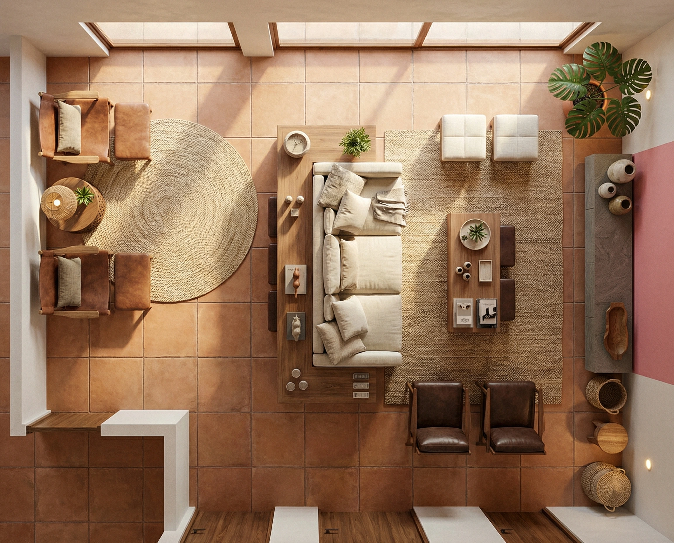 Explora estilos, prueba acabados y presenta propuestas de interiorismo sobre la foto real del espacio. Un sistema de visualización arquitectónica con IA diseñado para las fases de ideación y presentación.