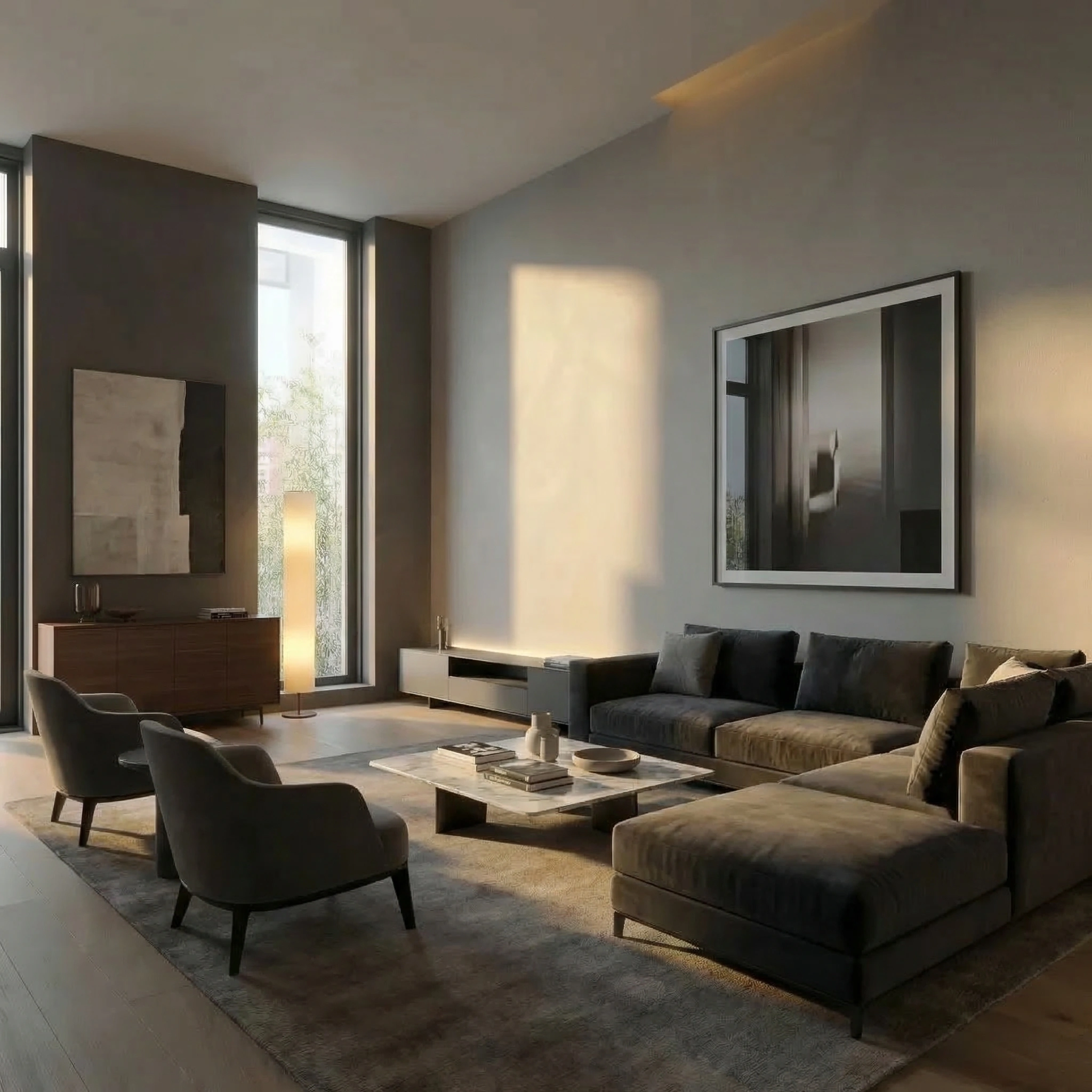 Refinamiento silencioso con calidez vivida. Ideal para propiedades que buscan esa elegancia intelectual, effortless y profundamente personal.